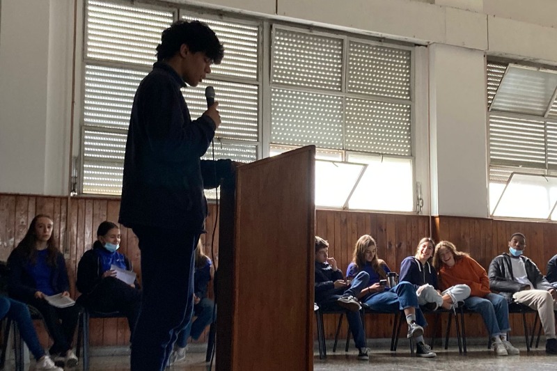 Ambientaron el Salón de Actos e hicieron una ronda de lectura en la que los estudiantes fueron presentando relatos y poemas de distintos autores elegidos previamente en clase.