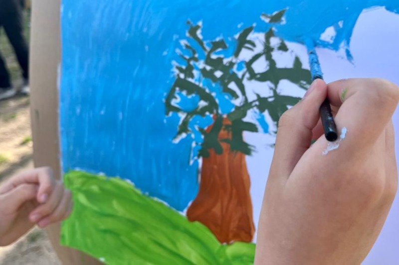 El sábado primero de octubre, en el marco del trabajo de Educación Artística que se lleva adelante en los sectores de Inicial y Primaria, junto al grupo Traza, se realizó una preciosa actividad en la Plaza Fabini que combinó arte y naturaleza.