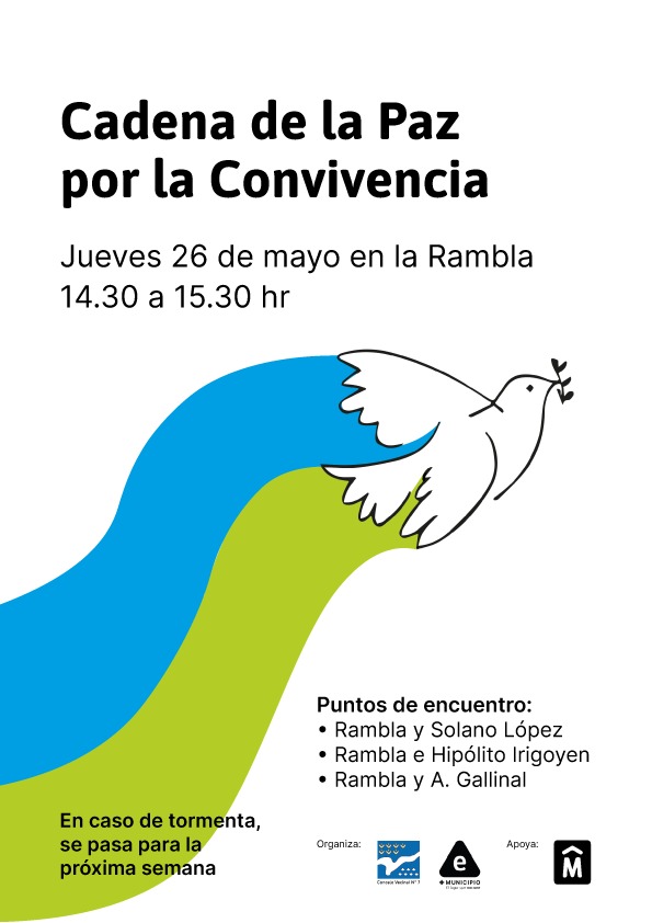 En el marco de la actividad organizada por el Centro Comunal número 7 de Malvín “Cadena de la Paz por la convivencia” el próximo jueves 26 de mayo a las 14.30 horas varios grupos representantes del Colegio participarán de diferentes actividades por la PAZ en la playa de Solano López y la Rambla.