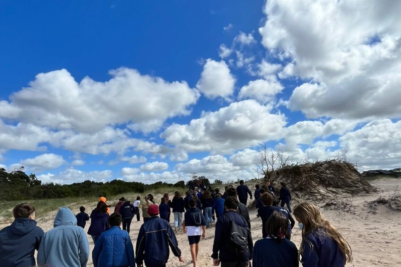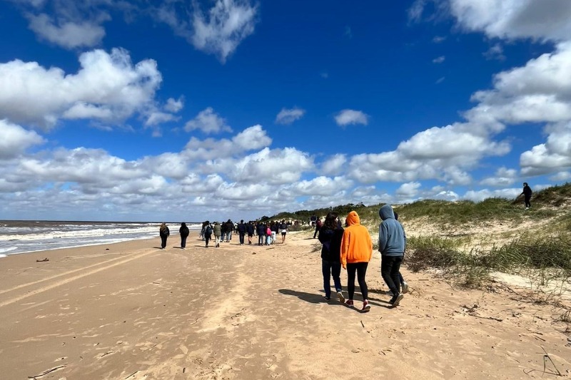 En la mañana del miércoles 30 de marzo los estudiantes de Primer año de Ciclo Básico, acompañados por integrantes de la Escuela de Animación, los adscriptos y docentes de Formación Humano Cristiana, compartieron la clásica caminata por la playa que se realiza en el mes de marzo. La actividad tiene como objetivo generar un espacio lúdico y recreativo que impulse la integración del grupo y el relacionamiento con los demás.