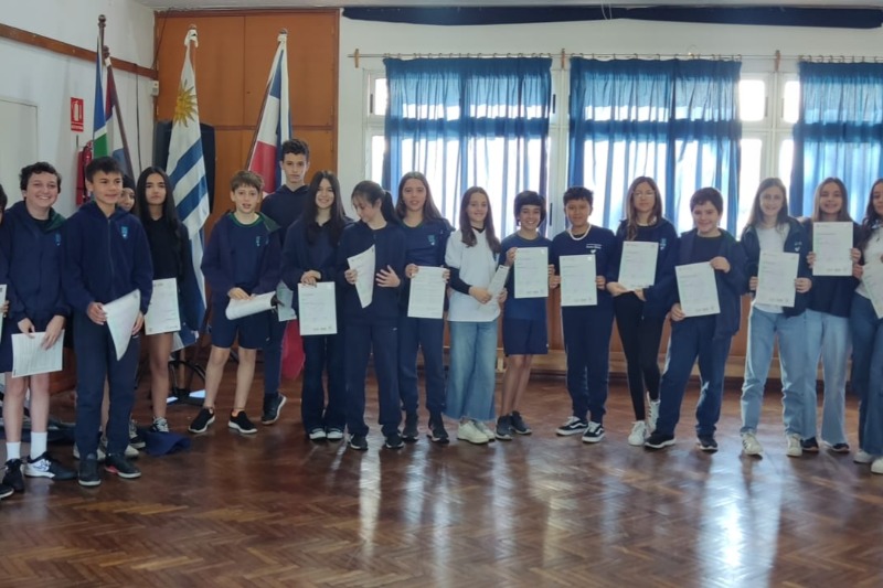 Al igual que en años anteriores la ceremonia se realizó en conjunto con los Departamentos de Inglés y Portugués del Colegio. La entrega de diplomas contó con la presencia de autoridades del Colegio, docentes, adscriptos y representantes del Instituto de Cultura Uruguayo-Brasileño (ICUB).