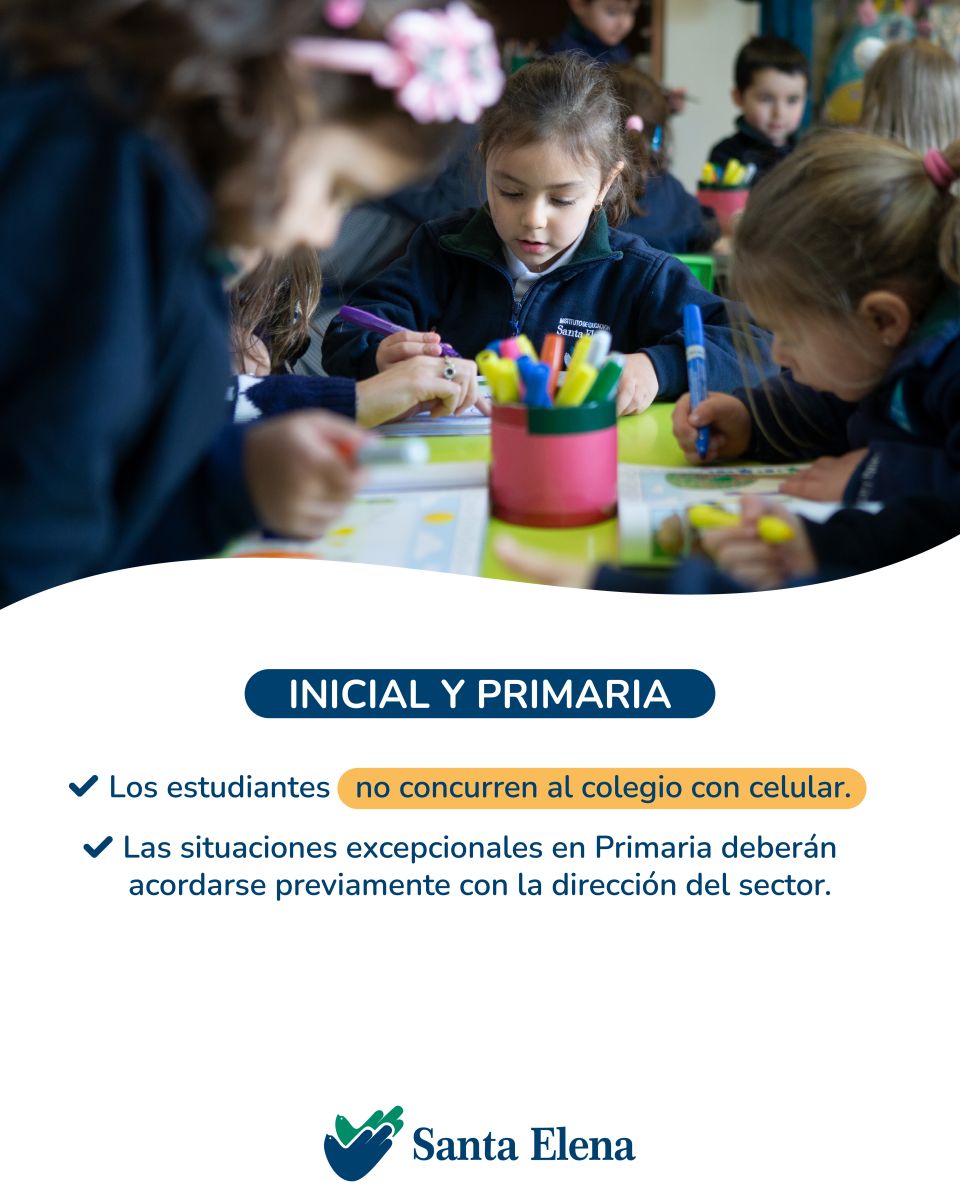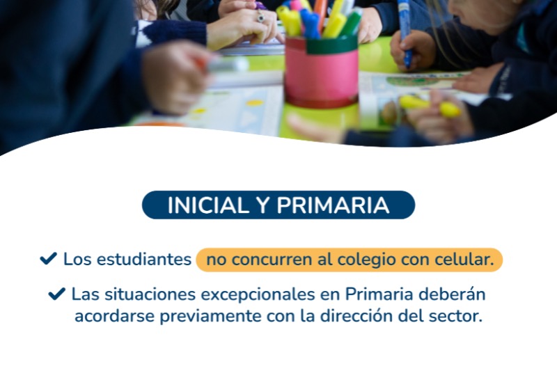Los estudiantes no concurrirán con celular al colegio. En situaciones excepcionales en Primaria, deberán acordarse previamente con la dirección del sector.