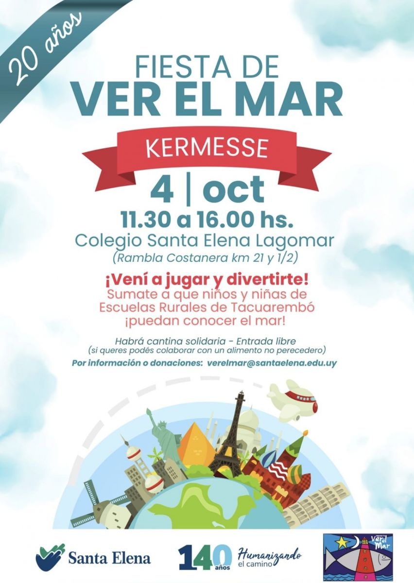 El sábado 5 de octubre, de 11 a 17 hs., los esperamos en el colegio para compartir una nueva edición de la tradicional Kermés de“Ver el Mar”, una jornada solidaria organizada por estudiantes, familias y educadores del Colegio. Habrá juegos, espectáculos, música en vivo y muchas sorpresas más. Todo lo recaudado será destinado al proyecto Ver el Mar.
