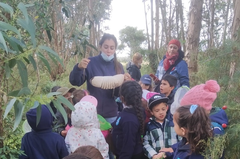 Durante el divertido recorrido por el monte de eucaliptus, en el que fueron acompañados y guiados por Stephanie, observaron pieles y huesos de los diferentes animales autóctonos que habitan la zona y que se encuentran escondidos en la zona. A lo largo de la entretenida y didáctica exploración fueron reconociendo y recolectando algunas muestras de flora del lugar. ¡Fue una gran experiencia para todos y una verdadera aventura de aprendizaje!