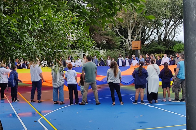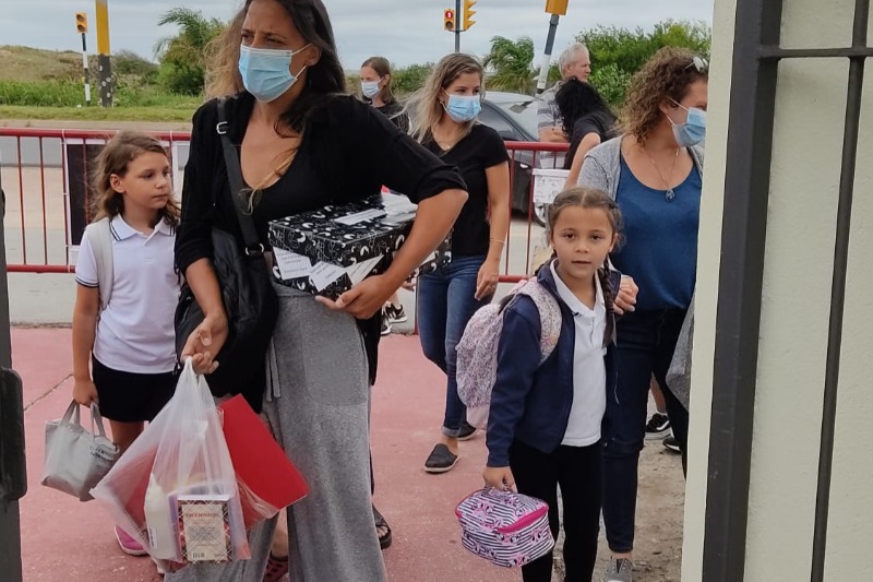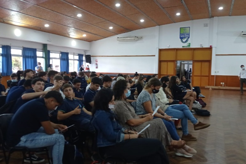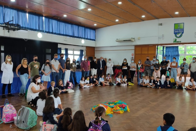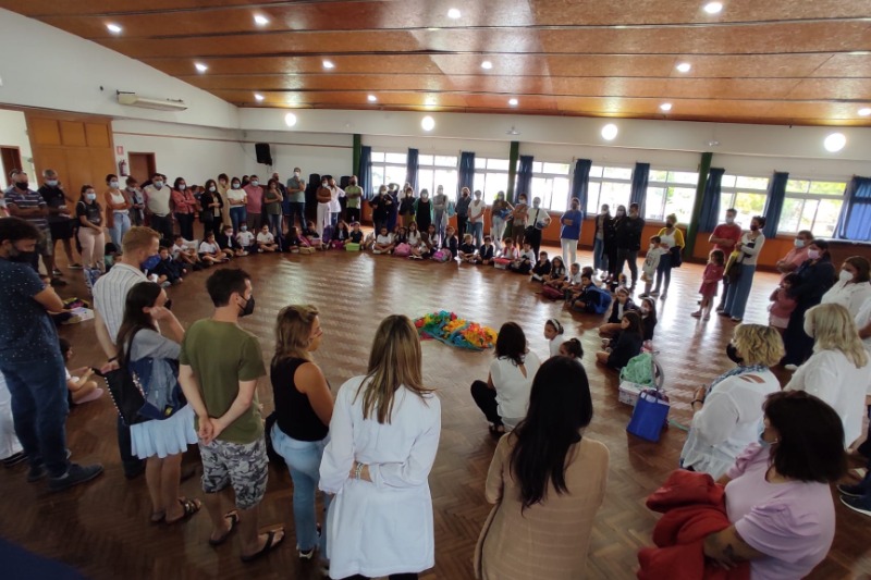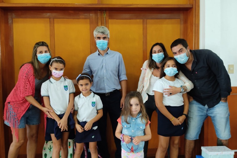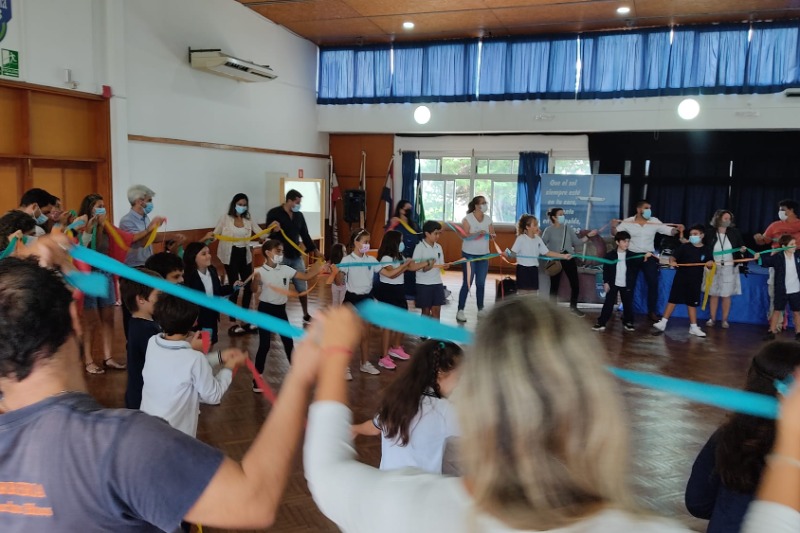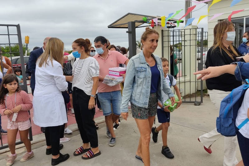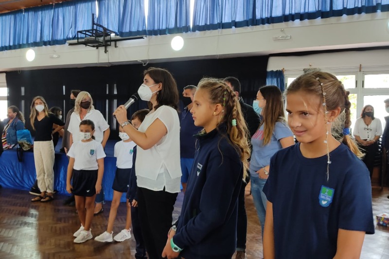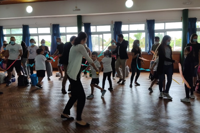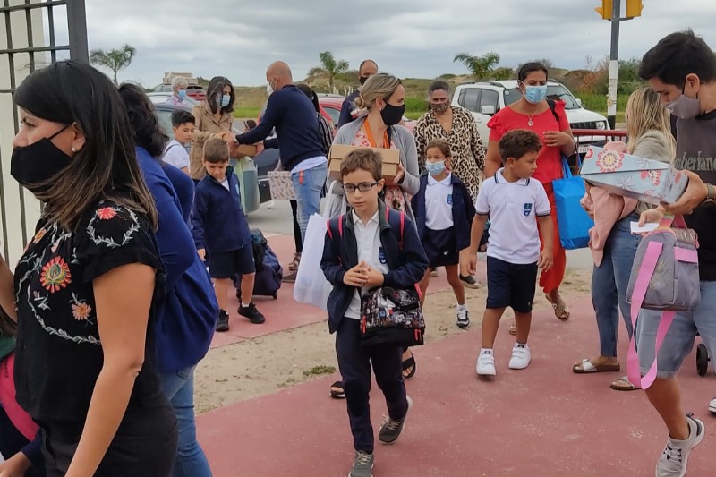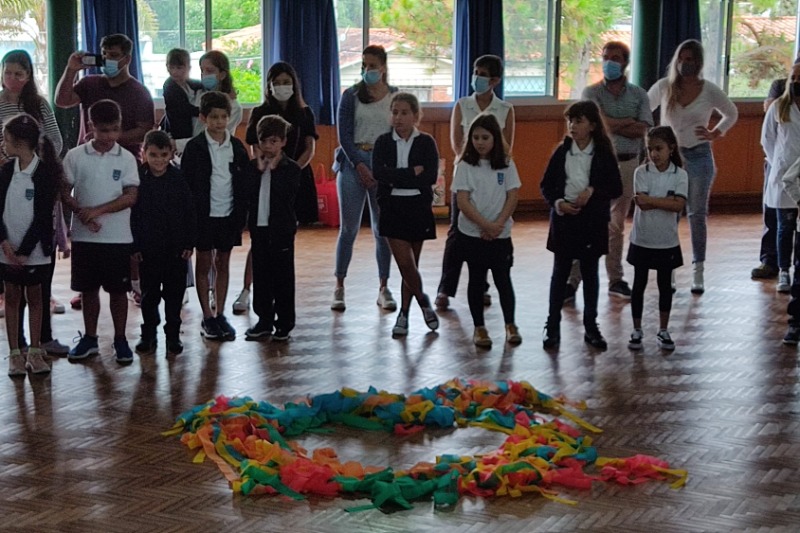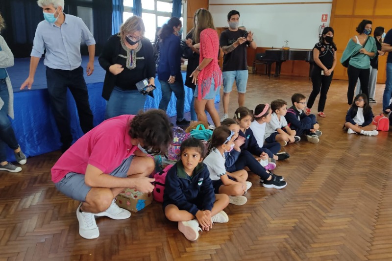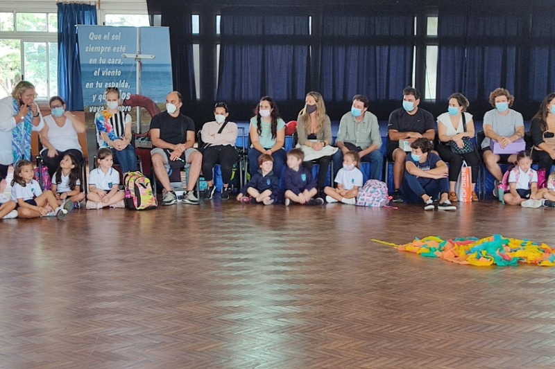 Acompañados por sus familias y de manera escalonada, los grupos de Primaria se reunieron en el patio y en el Salón de Actos del Colegio, para compartir una instancia de juego, disfrute y alegría previa a la entrada a cada uno de los salones.