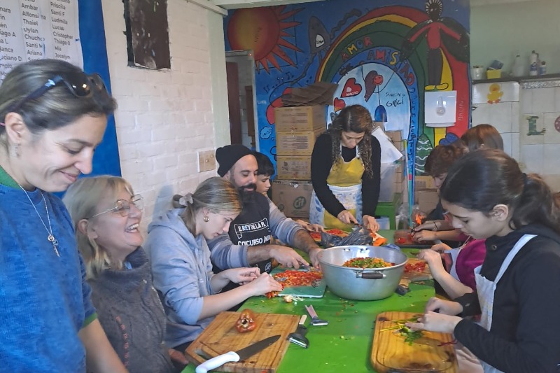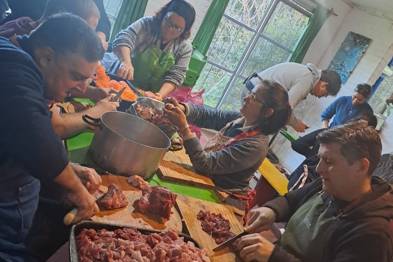 Una vez más docentes y estudiantes de Secundaria participaron de la actividad “Plato caliente” organizada por la Parroquia Ntra. Sra. de la Fundación, en la que se cocinan y entregan 150 platos de comida por día para quienes necesiten ese apoyo.