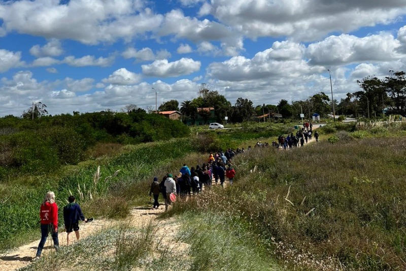 En la mañana del miércoles 30 de marzo los estudiantes de Primer año de Ciclo Básico, acompañados por integrantes de la Escuela de Animación, los adscriptos y docentes de Formación Humano Cristiana, compartieron la clásica caminata de integración que se realiza en el mes de marzo en la playa de Lagomar.
